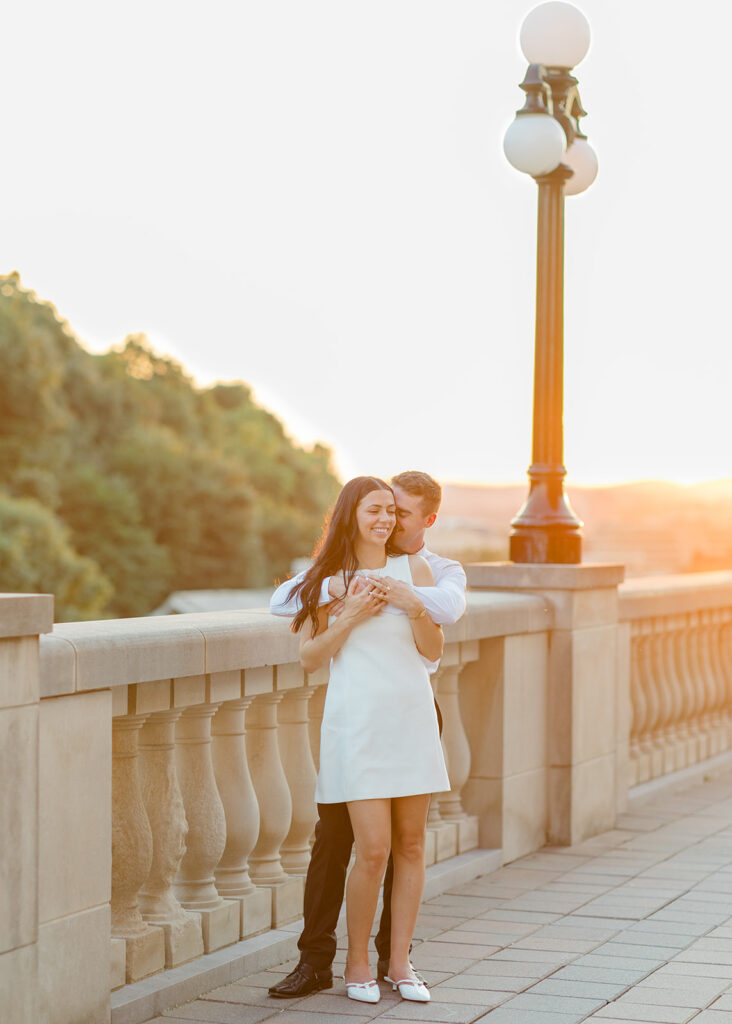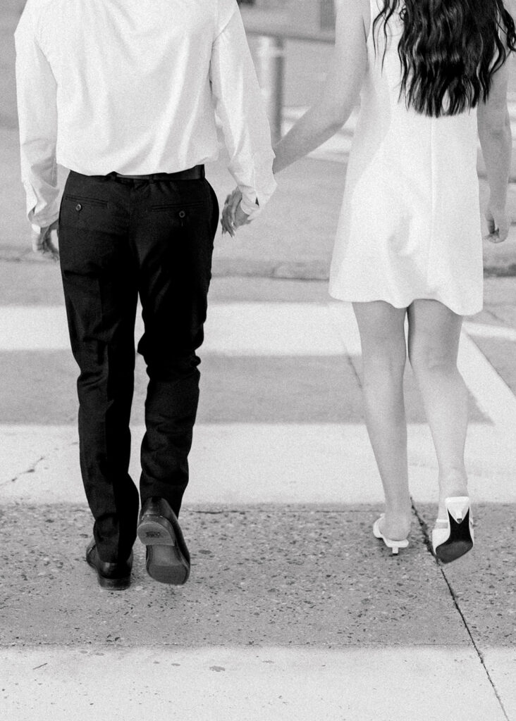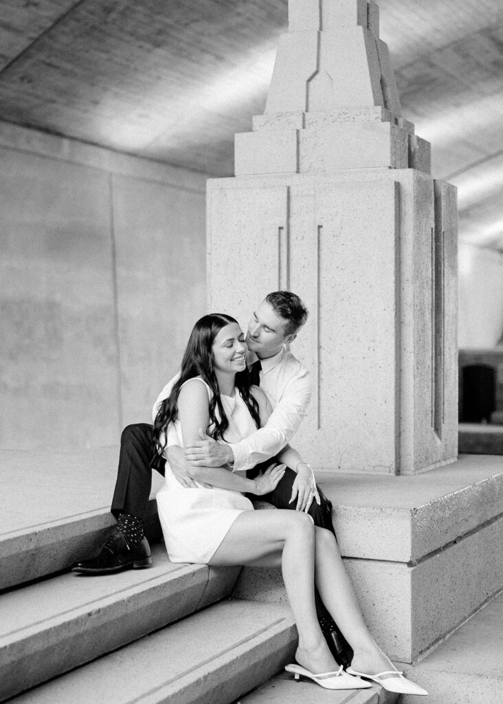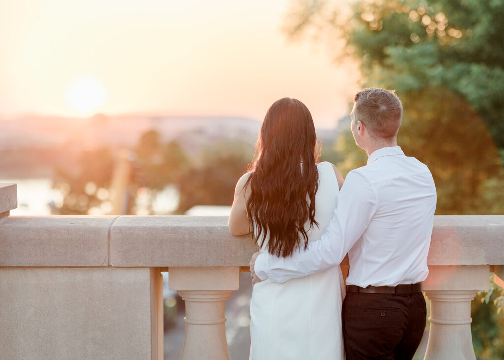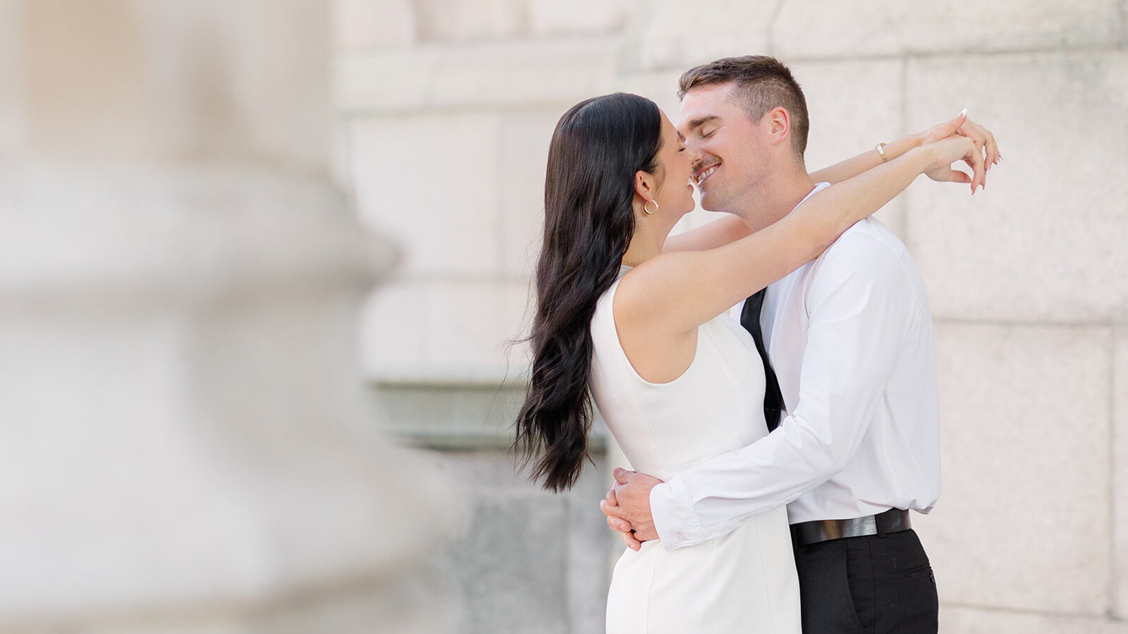We met on a warm summer evening, when the light was soft and golden, gently reflecting off the ivory stone of the hotel. We wandered through the iconic archways as the two of them shared little moments that made documenting their connection effortless. The clean, elegant lines of the architecture beautifully complemented their modern, classic outfits. Her simple white dress and his crisp white shirt and black tie were the perfect pairing for the setting, creating a look that will forever feel timeless.